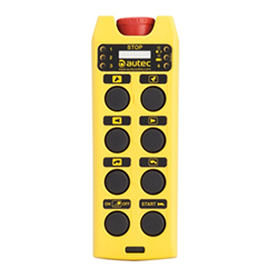 輕巧堅固的手持設備,帶有4個雙壓按鈕。右側最低的按鈕專用于啟動功能,并且可以選擇用于發(fā)出機器喇叭。該型號有4個LED,可以顯示當前選擇的雙葫蘆起重機或其他機器信息。電源可由2節(jié)可更換鋰離子電池(“B”型,帶電池充電器)或3節(jié)AAA標準內部電池(“C”型)提供。在這兩個版本中,都有一個“ID內部tx存儲器”,其中包含無線電遙控器的唯一且唯一的地址以及定義其使用模式的信息。它們可以與任何AIR系列接收單元結合使用。